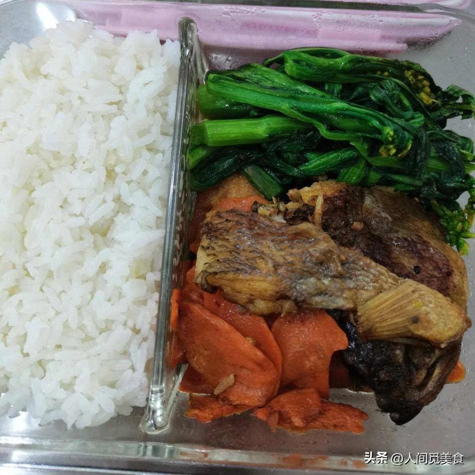 这几天张思曼带的午饭都不差,这条鱼个头不算大,腌制入味后油煎一下,鱼皮脆而鱼肉细腻,吃起来没有腥味,放一晚上也不会影响口感。胡萝卜也是晚上炒的,甜滋滋的有营养,早上她还起来煮了个菜心,清清淡淡地很解腻,这样的一荤两素刚好够她一个人吃。
