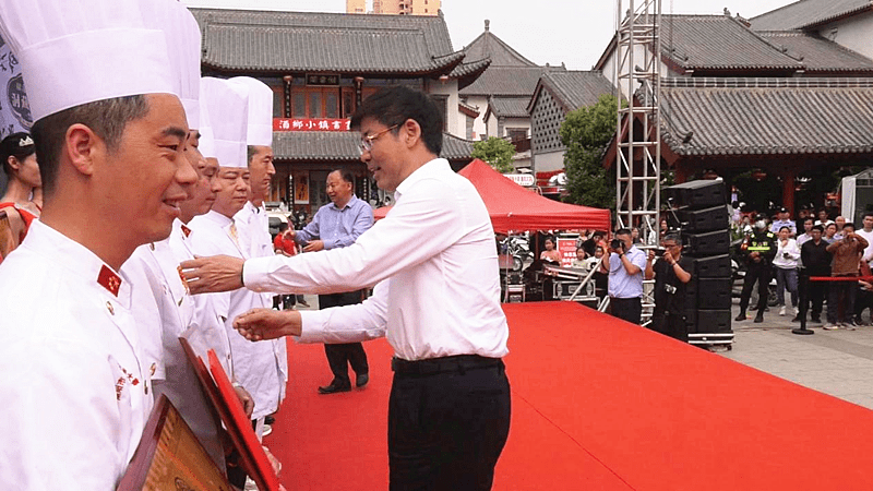 5月2日,“赊店老酒杯”南阳市第五届烹饪技能大赛暨赊店酒乡小镇首届美食节举行闭幕式。南阳市副市长周华锋,社旗县委书记张荣印、县长关文波,县委常委、宣传部部长、副县长赵向龙等参加闭幕式。