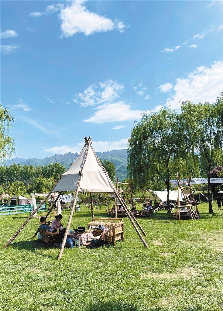 “五一”期间,不少游客来到长安区的一处郊野公园露营。 记者 王旭东 摄