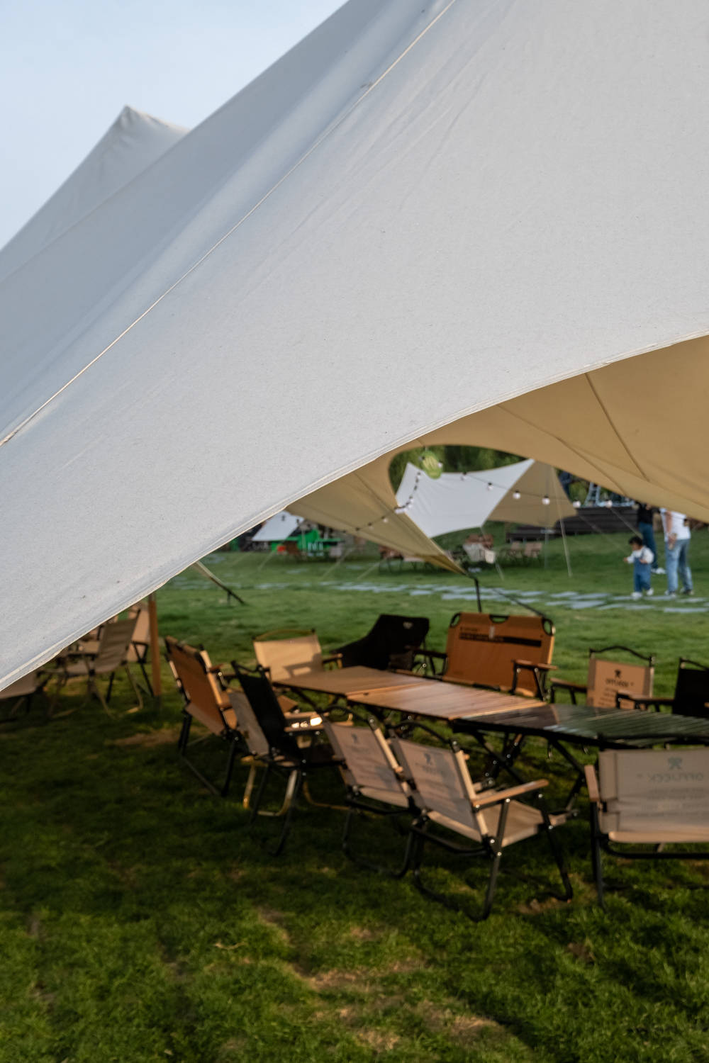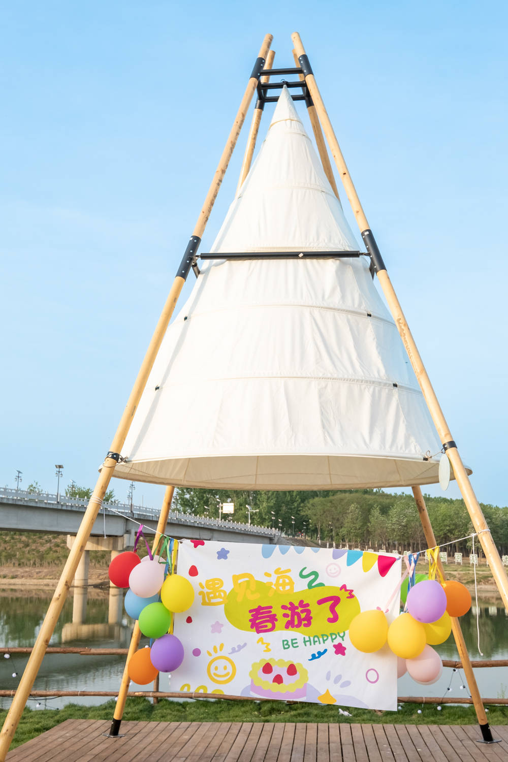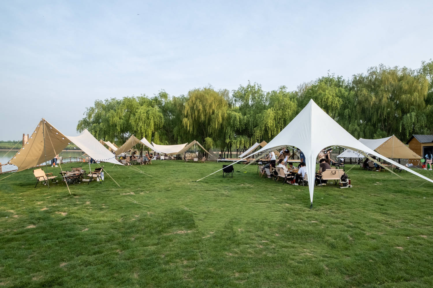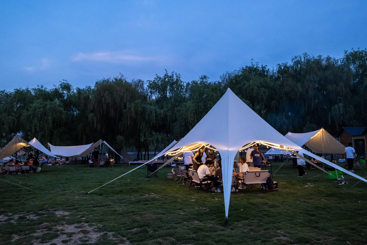 如今,新汴河紫薇园附近的入山海帐篷营地,便可以满足你的露营梦。