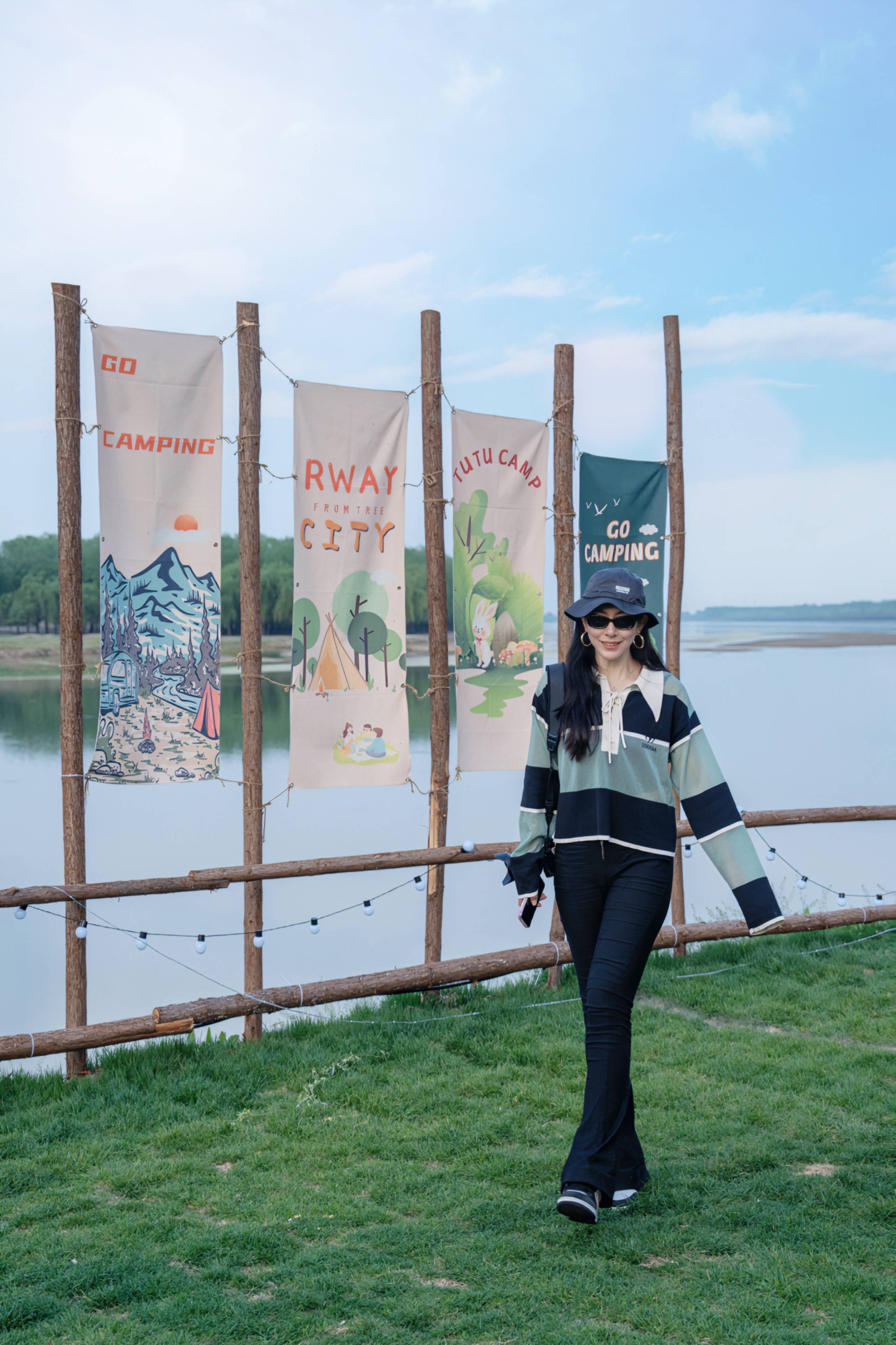 走出帐篷,就是各种打卡拍照点了。粉色心形气球、河边的氛围布景,都做的很不错。随手一拍就是慵懒感的度假大片!