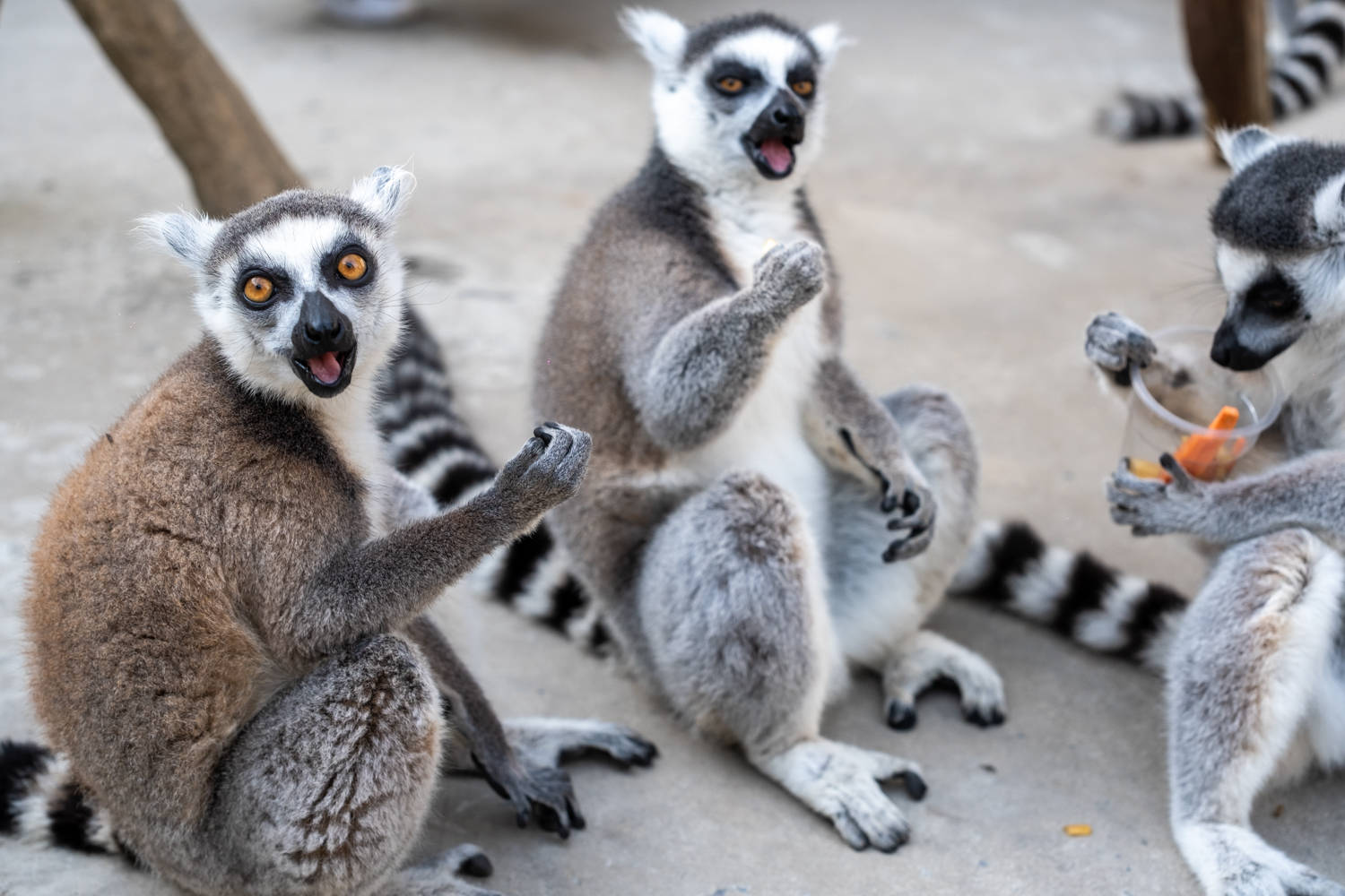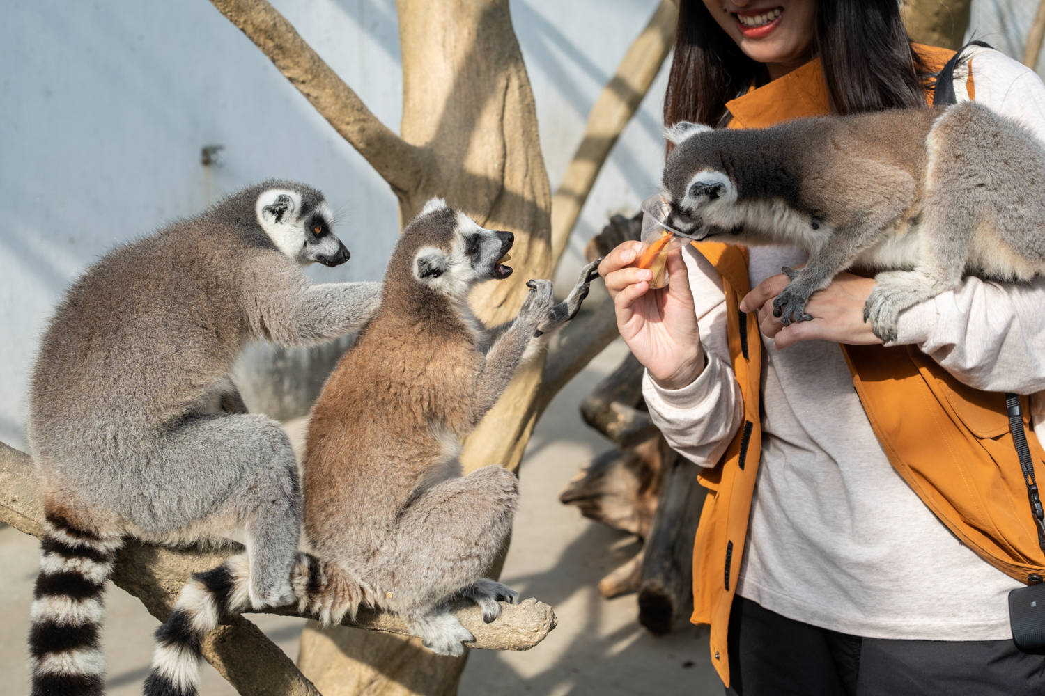 猴馆里居住着黑帽悬猴、灰斑悬猴,在这里可以喂环尾狐猴哦!小家伙们萌哒哒的,一点也不怕人。