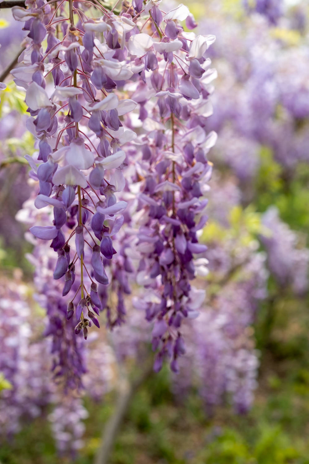 到了葛花滩可以看到成片的紫色花海,粉紫的花瓣一串串,在光影之下显得格外美丽。花色艳丽,花姿优美,花朵簇生于顶端,花瓣呈紫色,朵朵弯曲下垂,如遇微风飘飘荡荡,娇柔美艳,远望犹如彤云密布,美不胜收。