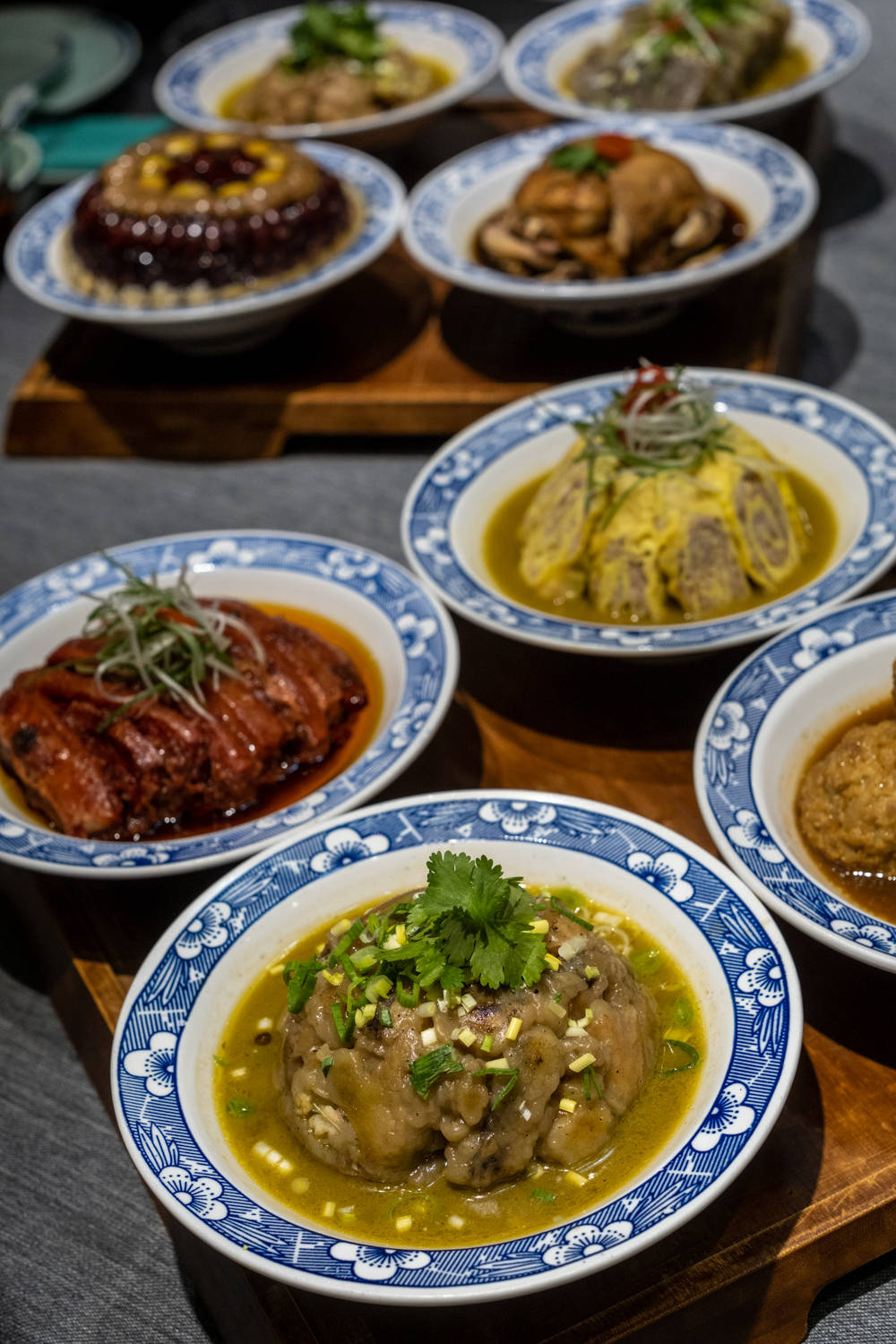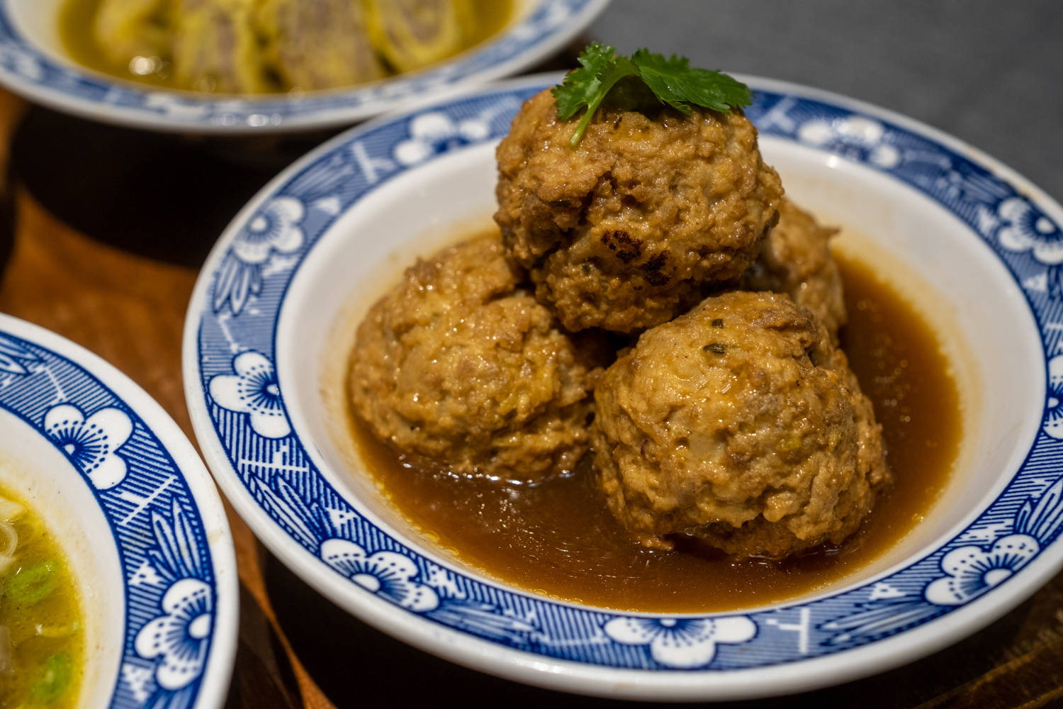 埇桥八大碗,都是宿州民间传统菜,八种不同滋味,常见为七荤一素八道菜肴:富贵扣鸡、酥鱼扣碗、干菜扣肉、如意蛋卷、四喜丸子、虎皮扣肘、芊子扣碗、八宝甜饭。制作时,使用当地食材,烹制过程考究,凸显食材本身最自然的味道,蕴含代代相传最浓厚真挚的情意。四喜丸子,寓意团团圆圆。芊子扣碗,寓意百事亨通。