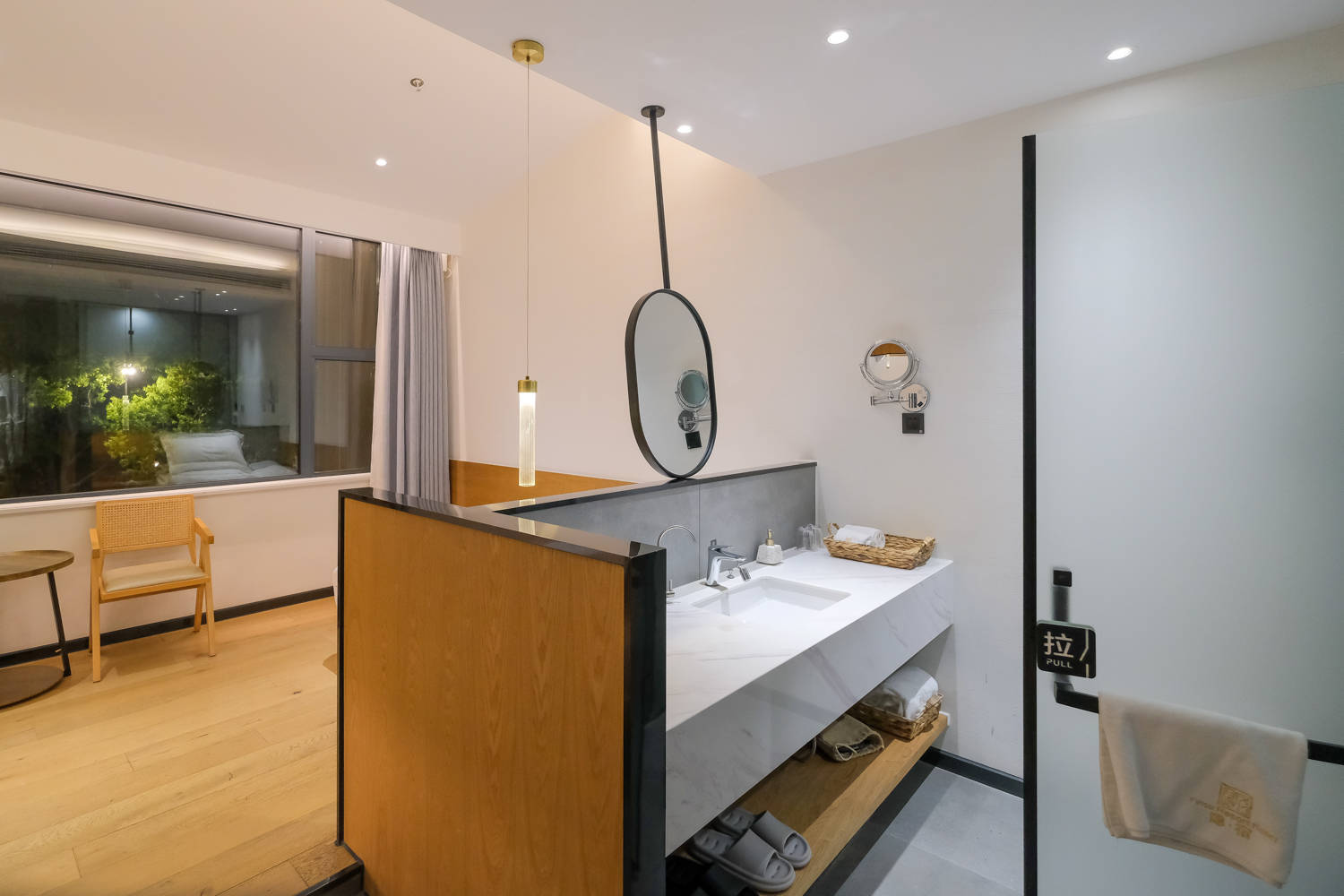 房间的配置也很讲究,干净整洁的床上用品、小清新的洗护用品、纯棉的拖鞋,也是蛮用心的。