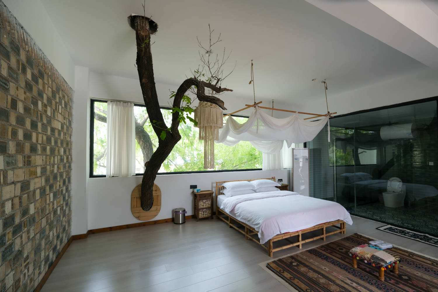 还有一棵树延伸到了房间,真的太美了!纯纯的自然山野之感。想要体验几日乡村生活,记得来这里小住一下哦!