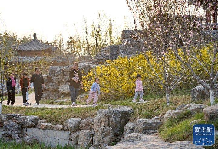 市民在雄安新区悦容公园游玩(3月30日摄)。新华社记者 牟宇 摄
