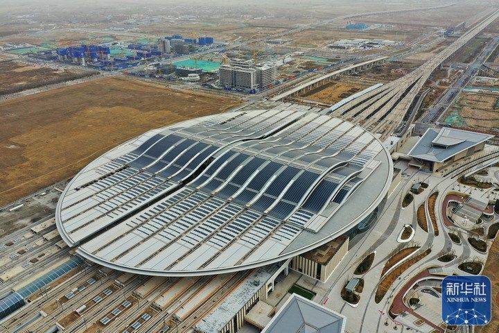 这是京雄城际铁路雄安站(3月23日摄,无人机照片)。新华社记者 牟宇 摄