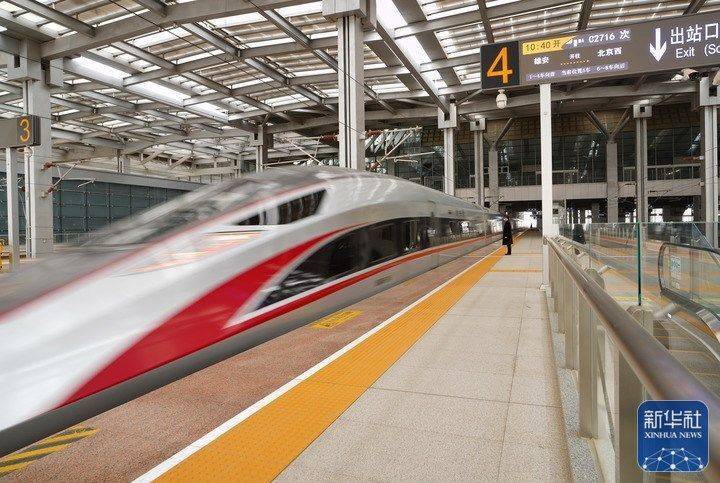 一辆高铁列车驶离京雄城际铁路雄安站,开往北京(3月22日摄)。新华社记者 牟宇 摄