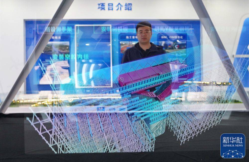在中建八局雄东管廊项目科技展厅,工作人员使用全息投影技术进行工程展示(3月20日摄)。新华社记者 牟宇 摄