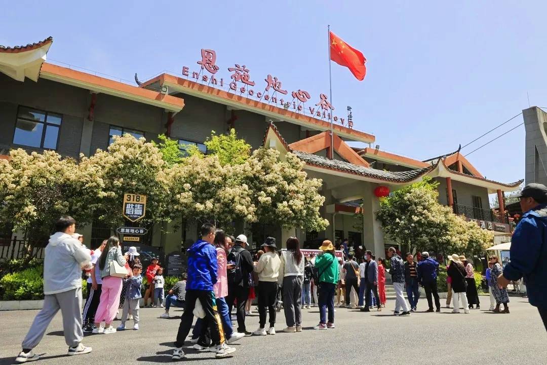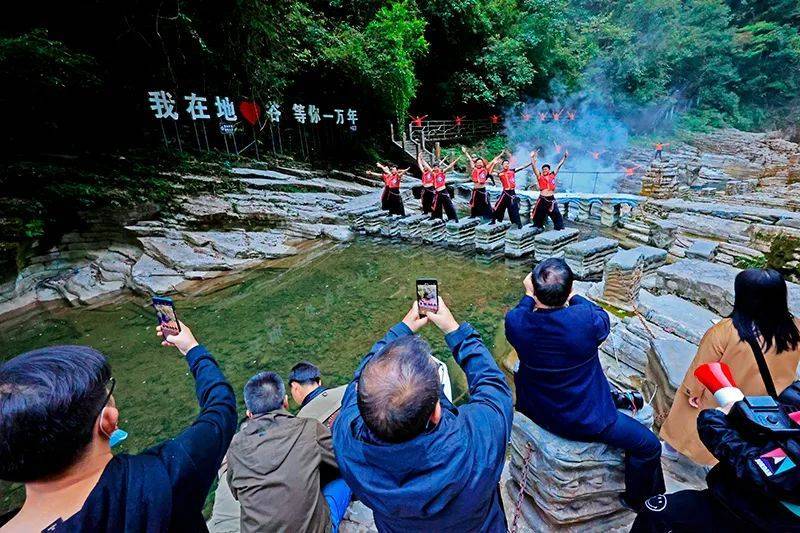 云上恩施报道 (建始通联记者 薛荣 黄未 通讯员 吴冰)“门前一条河,河里鱼儿多,郎说拿网撒,姐说用手捉……”“五一”假期,伴随着央视《星光大道》年度总冠军、恩施地心谷景区形象代言人一一“土家稀奇哥”的《门前一口堰》悠扬的民族风情曲调,全国各地的游客纷至沓来,探秘地心,穿越古今,开启“天之涯、海之角、地之心”的心愿之旅,打卡体验“人类起源地,秘境地心谷”的“险、奇、古、野”特色景观,景区内游客如炽。