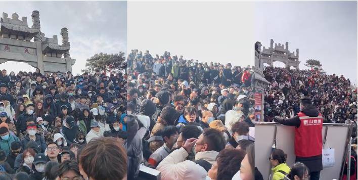 山上放眼望去全是人头,从山脚堵到山顶,爬不动了也能被人海一路推着上去。
