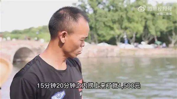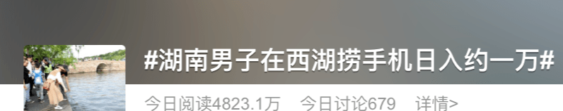 话题“湖南男子在西湖捞手机日入约一万”