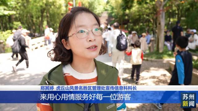 虎丘山风景名胜区管理处宣传信息科科长郑其婷说,在整个五一假期,全体虎丘职工都放弃休息,投入到了整体的景区管理服务当中,在南北门,包括上山路以及千人石等一些人流聚集的区域,也是劝导游客文明旅游,并且进行动态跟踪保洁,全面提升园容园貌,用心用情服务好每一位游客。