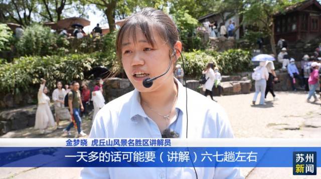 “一天多的时候可能要讲解六七趟,每趟时间要一个小时左右。一般在路上,也就是赶去南门或者北门的路上 可以稍微歇一歇。本身我会讲得更细致一点,让游客尽量能完整了解到虎丘的历史,让他们这一次的虎丘之旅不会留下任何的遗憾”,虎丘山风景名胜区讲解员金梦晓说。