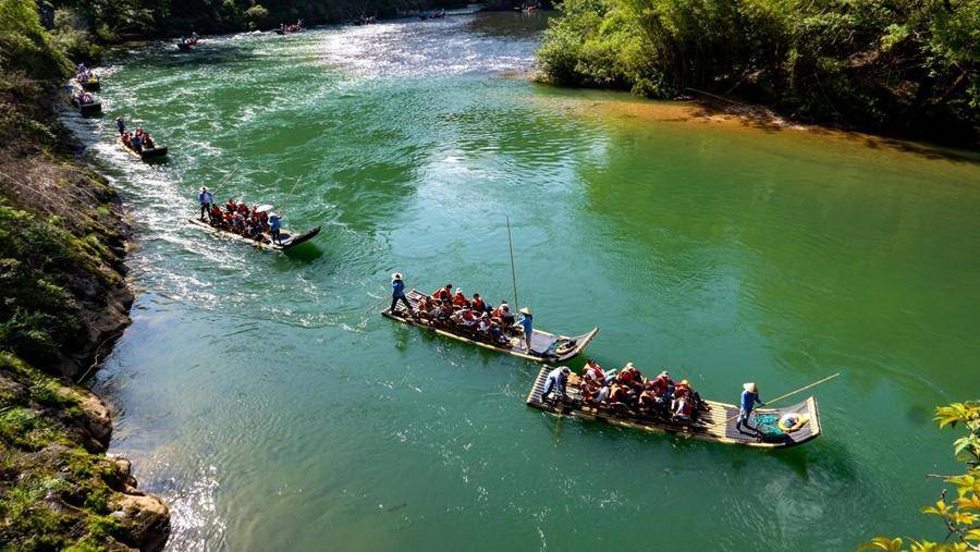 游客乘坐竹筏畅游九曲溪。彭善安摄