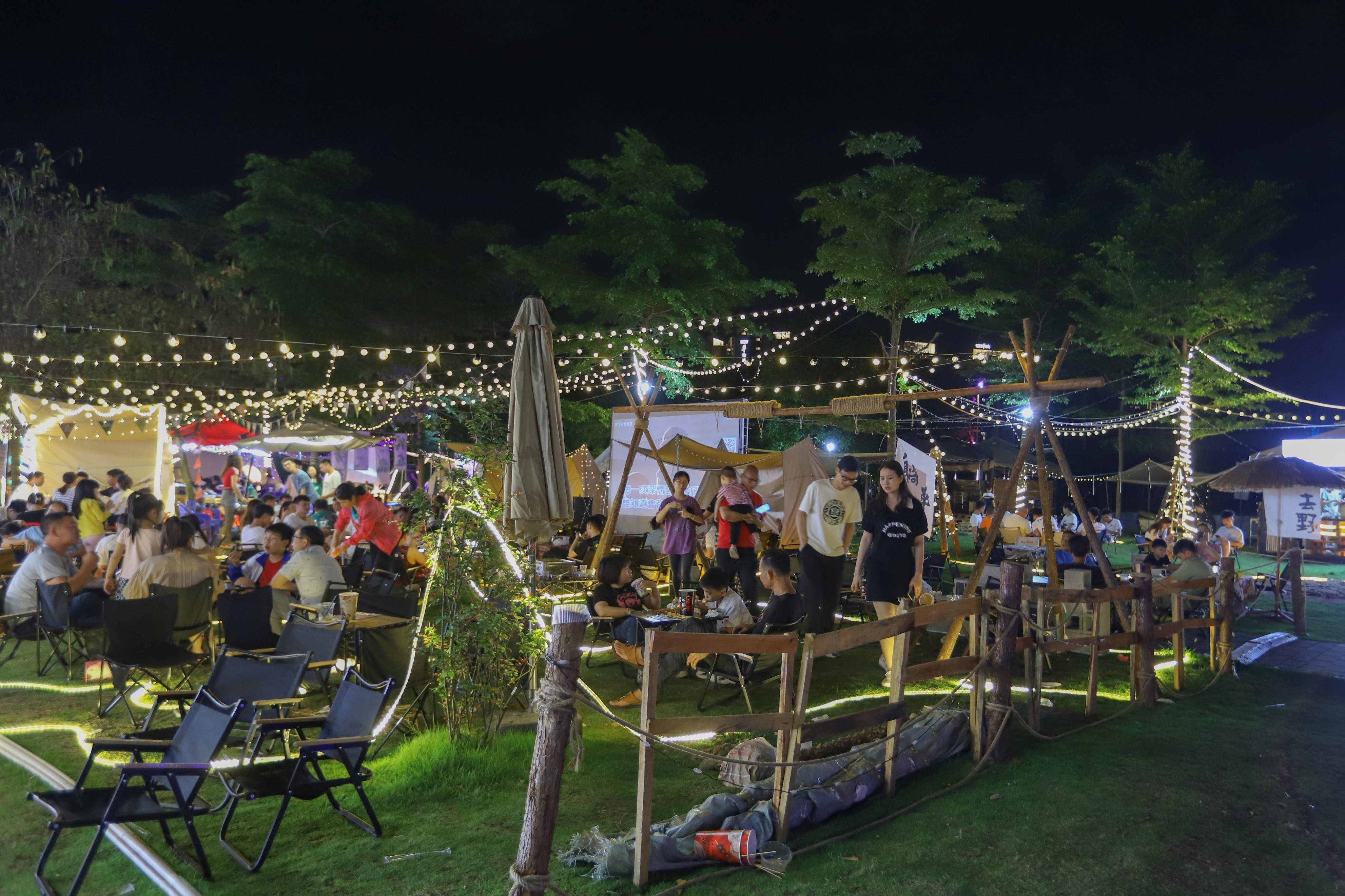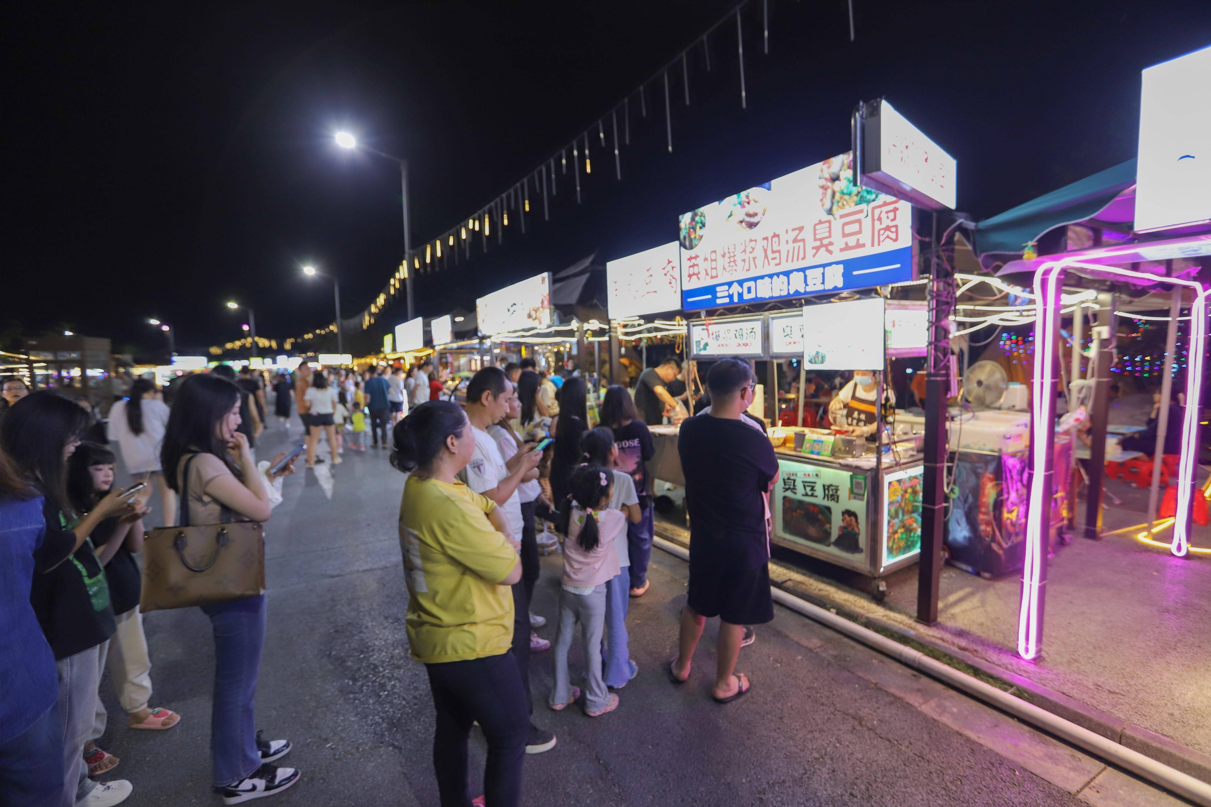这个夜市非常热闹,有各种各样的小吃和娱乐设施。