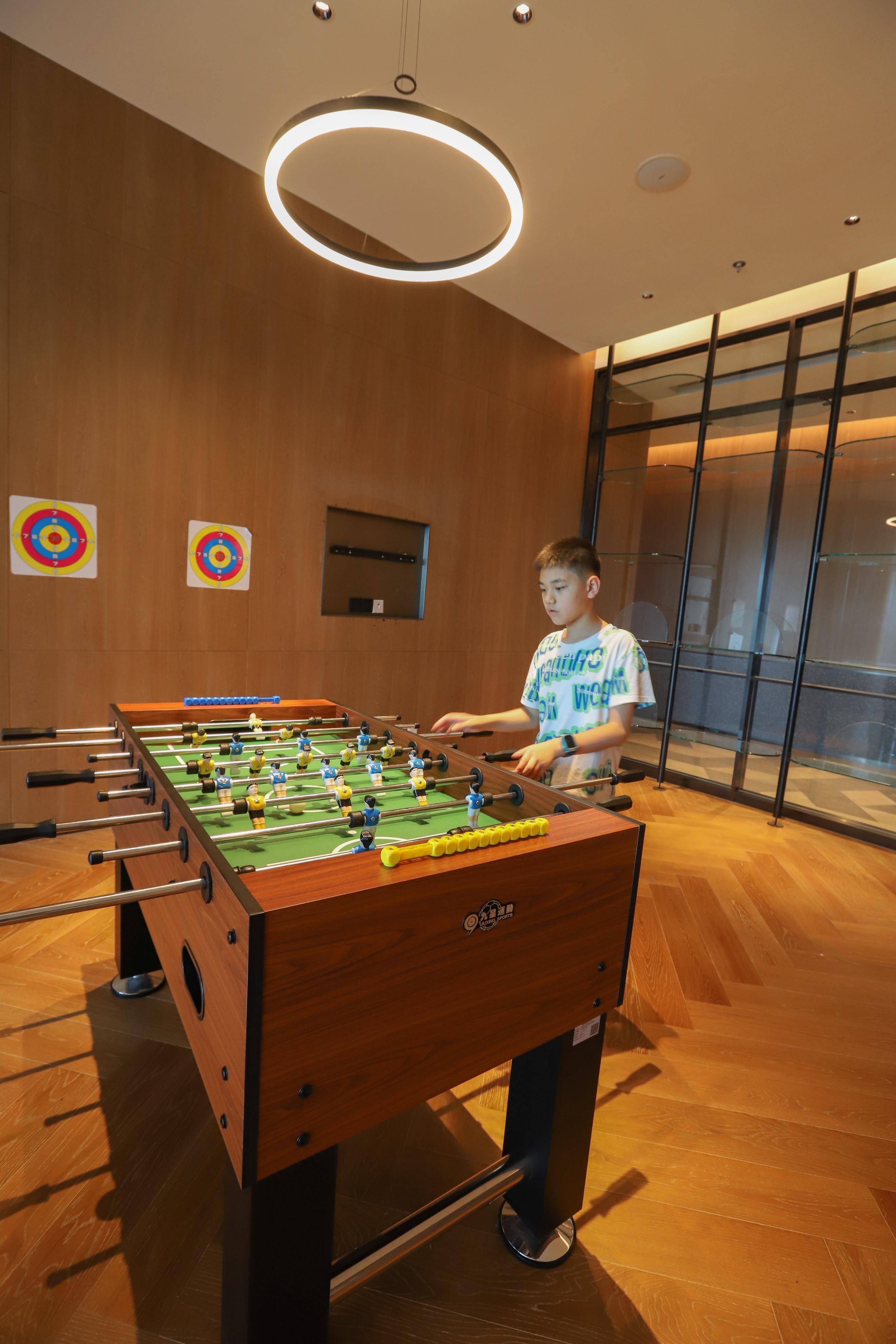 酒店二层有儿童乐园,里面有游戏机,有乒乓球室等,可以一起打打球,三层有恒温泳池和健身房,在这里锻炼身体,还是挺不错的。