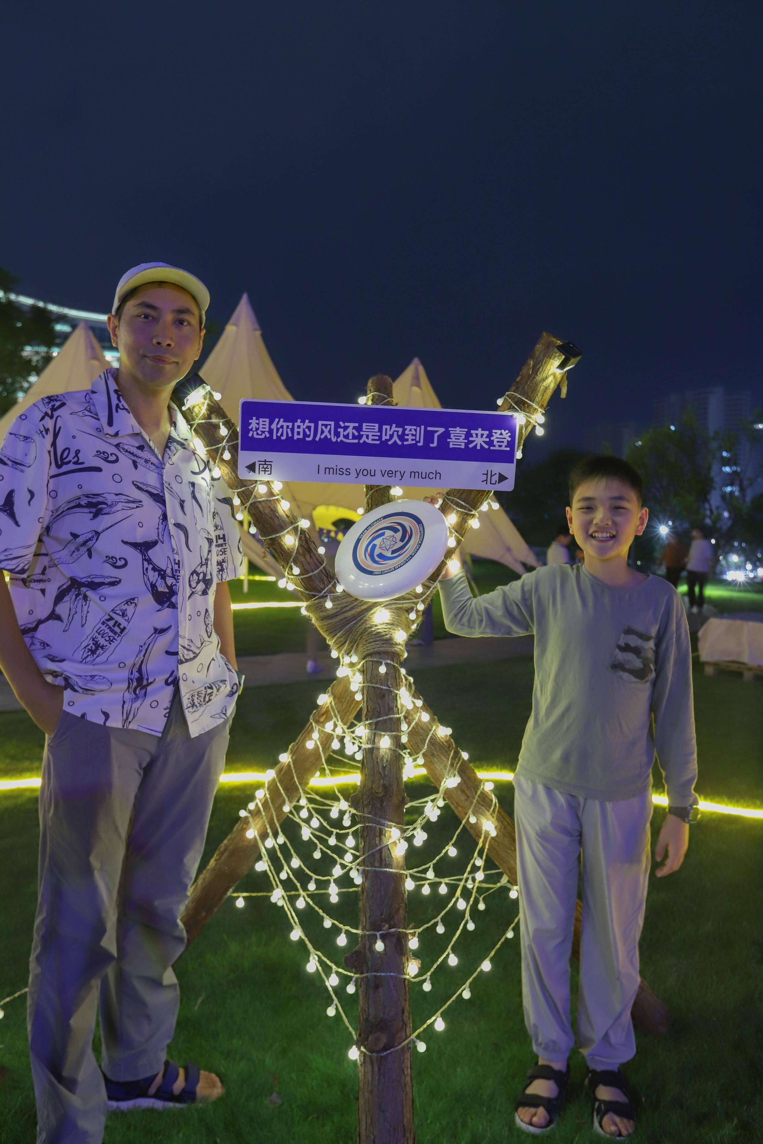 晚上,在酒店前面的大草坪,就是一片很好的露营地,吹着湖风,在这里玩飞碟游戏,非常开心。