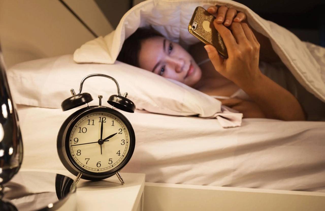 表现:五一假期,白天睡懒觉,晚上熬夜刷手机、追剧,甚至通宵喝酒打牌,身体得不到充分的休息,打乱了人体正常的生物钟,造成“睡眠紊乱”。