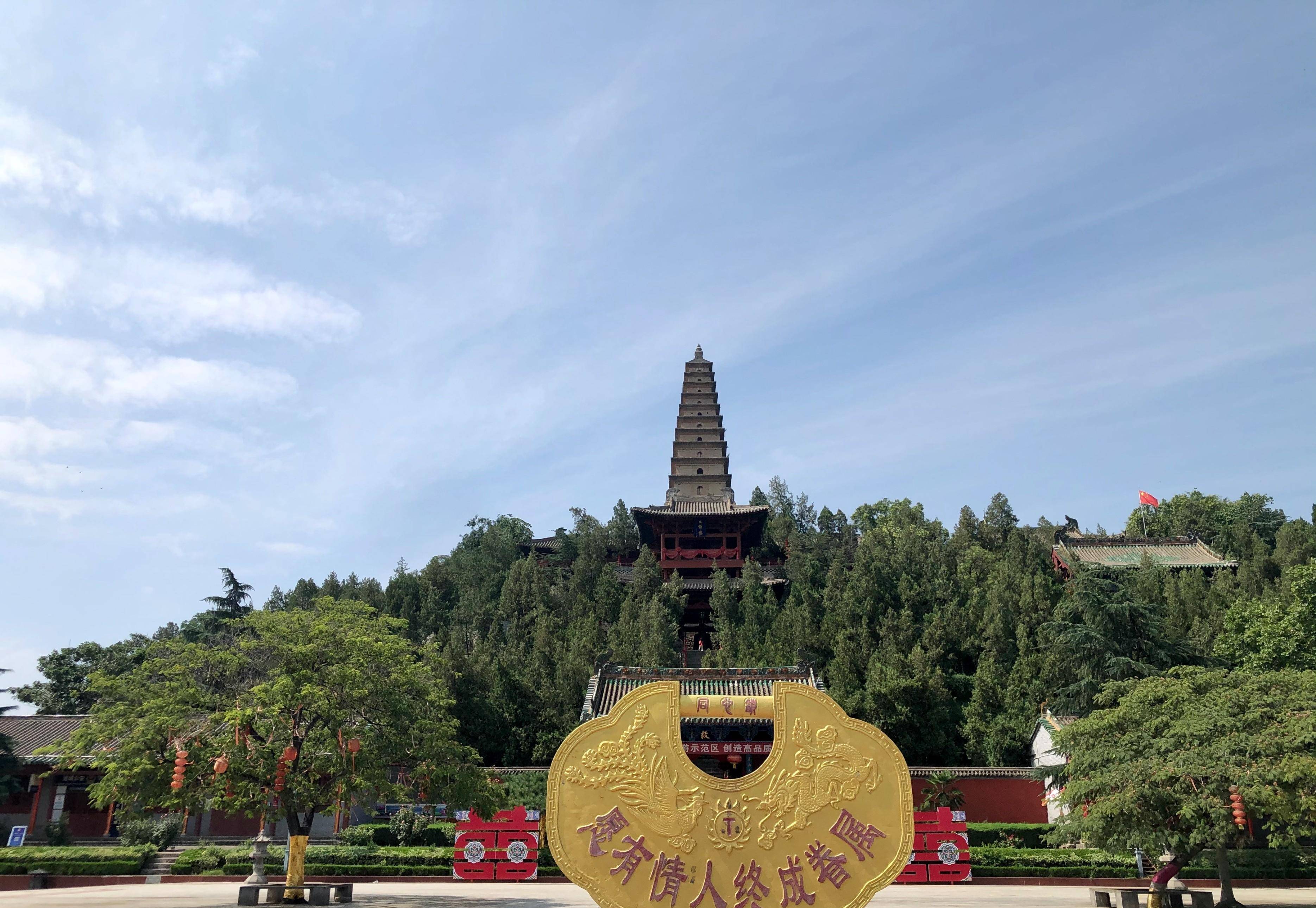 就在离古渡口不远的地方还有两大景观,第一是鹳鹊楼,第二是普救寺。在鹳鹊楼,向远处眺望,白日依山尽,黄河入海流的景象展现的淋漓尽致,登楼之后,欲穷千里目 更上一层楼我们也可以身临其境的体会。
