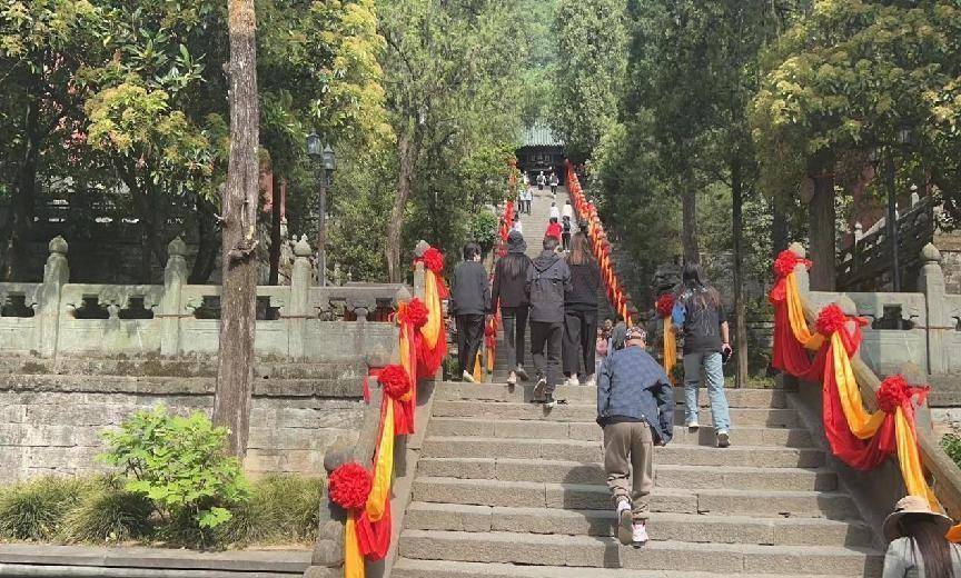 南岩景区客流平稳有序,景区工作人员为游客提供旅游咨询、线路推荐等服务。(武当融媒记者 沈立燕)