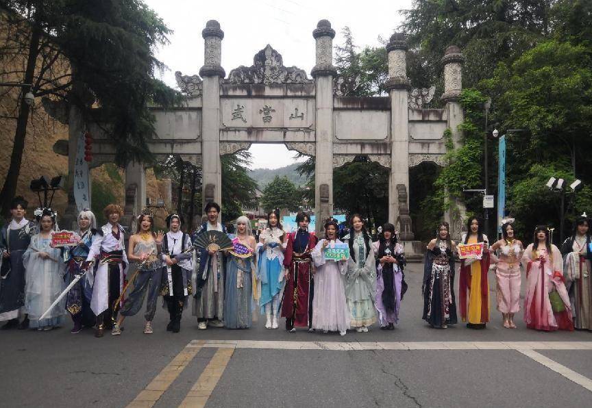 coser巡游在武当山景区门口打卡。(武当融媒记者 刘程程)