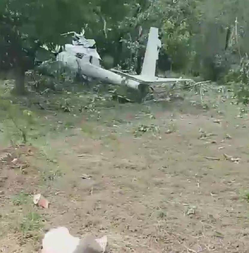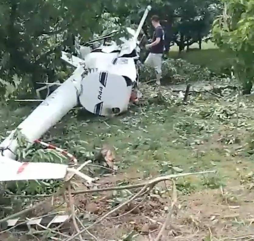 从现场画面可以看出,一架直升机坠落在附近村民的樱桃地里,损伤惨重,现场有人报警,并且提醒围观人员不要破坏现场。