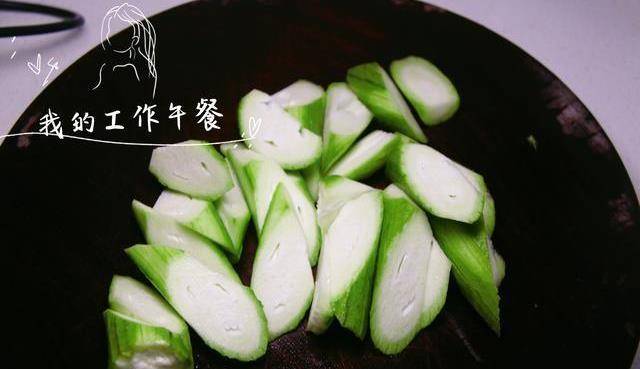 第二步:口蘑菇,去掉根部,切片,丝瓜洗净丝瓜刨皮,切成滚刀块备用。