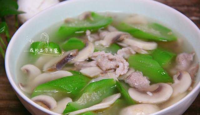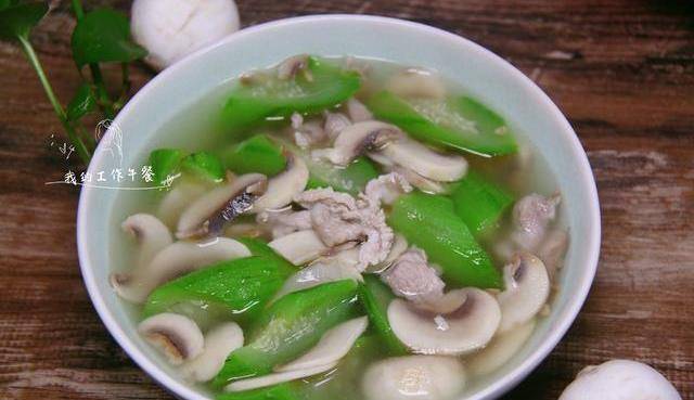 丝瓜清爽的口味,深受人们喜爱,是夏天时令菜,用蘑菇,瘦猪肉和丝瓜一起做成的鲜汤,味道非常的鲜甜,营养也很丰富,老少咸宜。况且丝瓜含有大量的维生素C,从内到外养护肌肤 ,粗纤维,孩子上火消化不好,不防试试这汤,清爽不油腻,润滑肠胃,有助于排便。