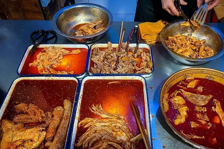 要是去餐馆里点上一桌的麻辣特色菜,必然会看到“样样红”的餐桌盛景。不过,相对来说,重庆更偏麻一点,要说单纯的酷辣还是得去四川,来上一份特辣火锅,吃完保准儿让你眼冒金星,直呼辣得过瘾!
