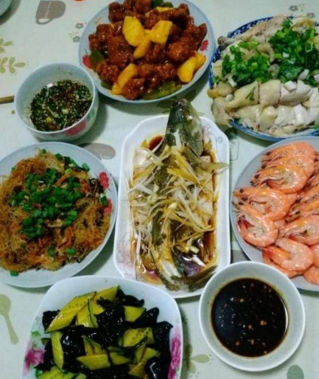 第三位朋友的饭菜也是很丰富,相信很多人都会被诱惑住,清蒸鱼,大虾,白切鸡,蚂蚁上树,菠萝排骨,凉拌木耳,很多人说听这名字就香,这几道菜也都是很有名的菜,白切鸡是非常有名的粤菜,还在节日中,餐桌上都会有这道菜,鲈鱼的价值也非常高。