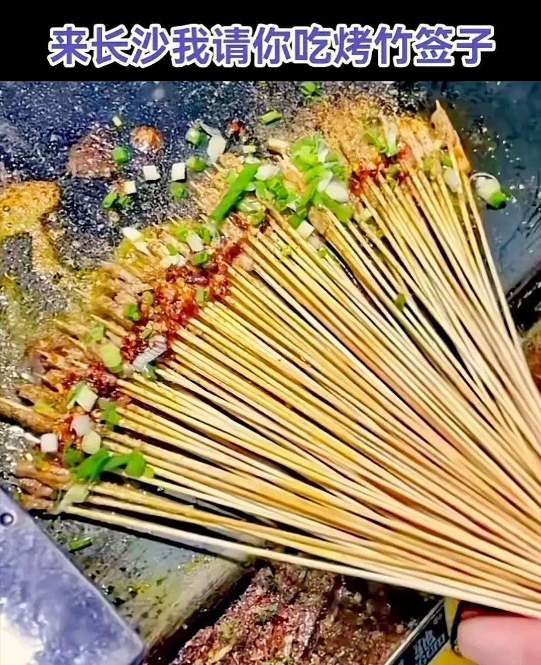 长沙本地网友恨铁不成钢地晒出了长沙烧烤的特产——烤竹签子。