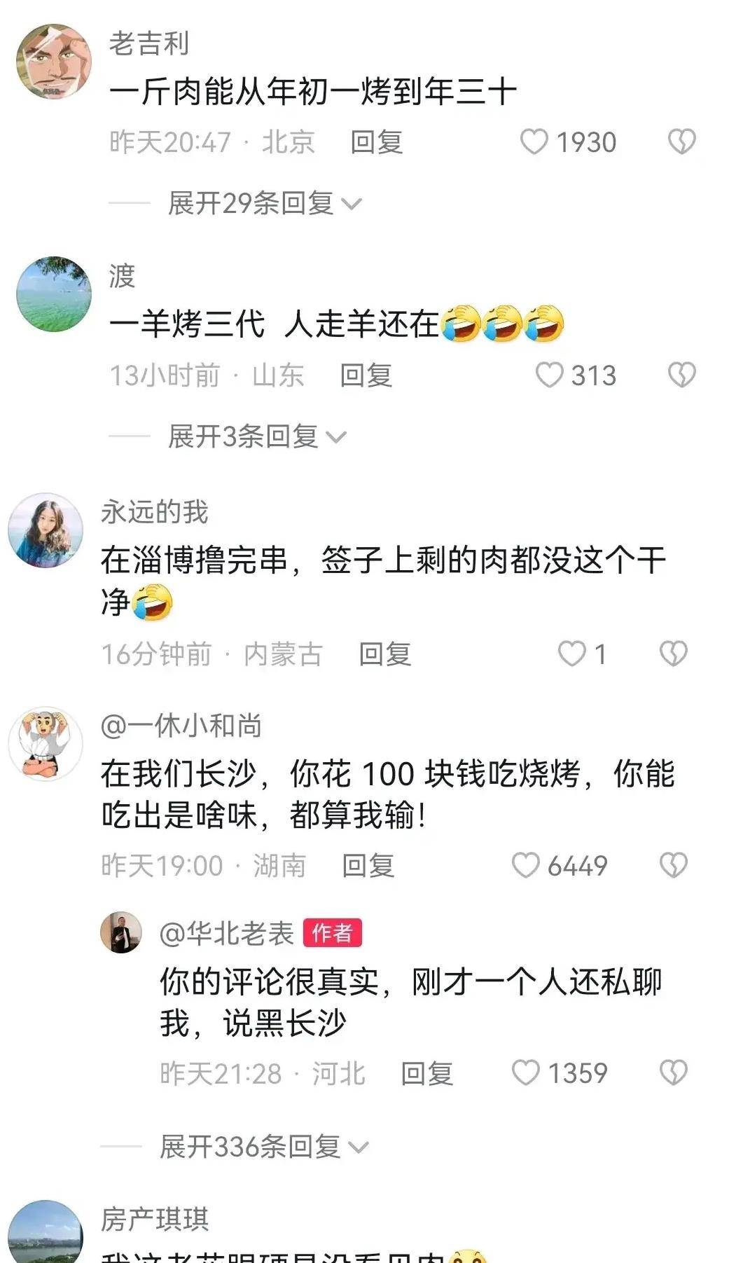 长沙网友只好自嘲道:“在我们长沙,你花100块钱吃烧烤,你能吃出是啥味,都算我输!”