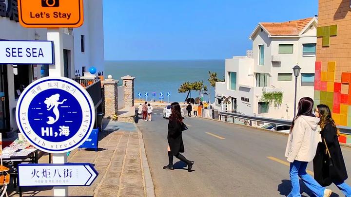 通往大海的斑马线,海风吹拂的公交站,矗立海边的灯塔……火炬八街路,就像是漫画里才有的场景。
