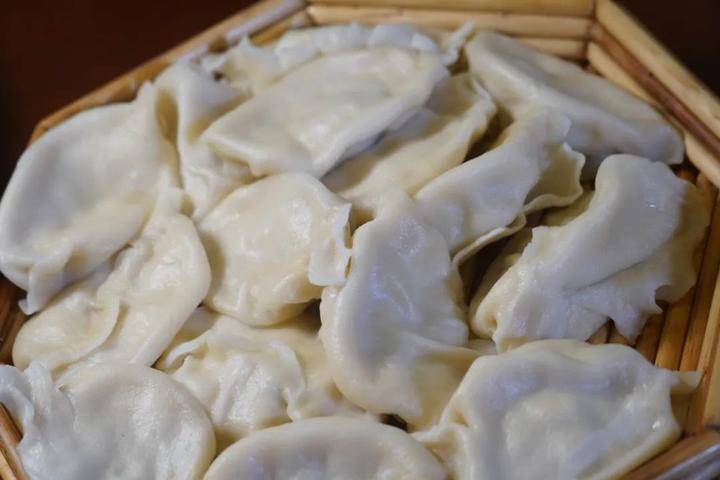 夹一只饱满的水饺,蘸点儿小料入口,醋的酸味、酱油的咸味和辛香冲鼻的蒜味交错融合,烘托出鱼肉本身的鲜香。