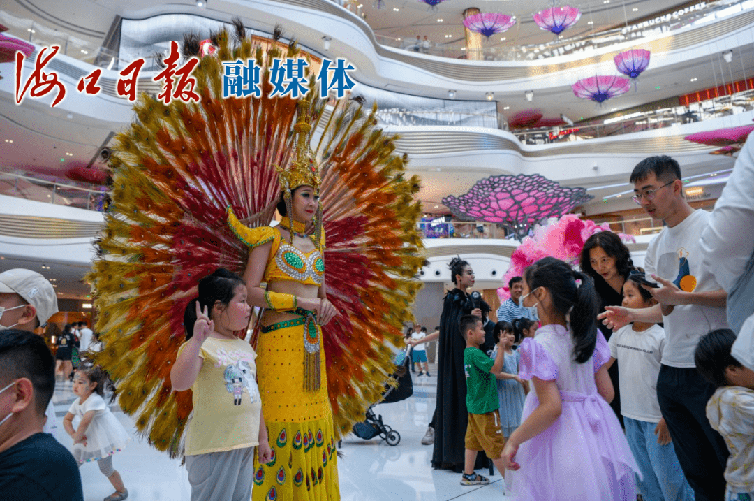 5月3日,cdf海口国际免税城推出天际秘林主题演出吸引顾客观看。海口日报融媒体记者 苏弼坤 摄
