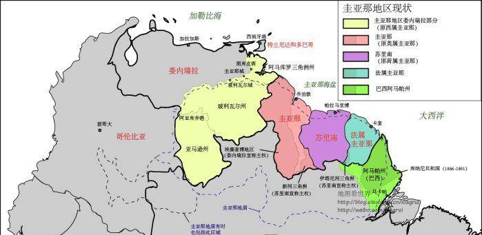 其实圭亚那地区曾被三个国家分裂,圭亚那以前是英国的殖民地,苏里南是荷兰的殖民地,而法属圭亚那是法国的殖民地。