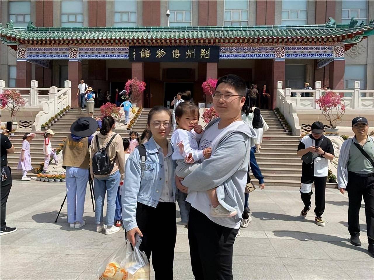 上午10点,已有大批游客来到荆州博物馆,大家纷纷拍照打卡,监利市民龚先生就是一家三口专程来博物馆游玩。
