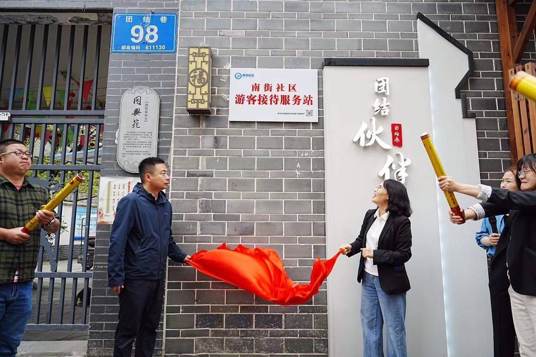 近日,成都市温江区柳城街道南街社区发布“游文庙·访古今‘两河一心’社治游”路线,并举行团结巷游客接待站揭牌仪式。整场活动分为“游社治景点、品文庙国风、尝开心美食”三个部分。