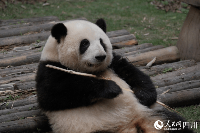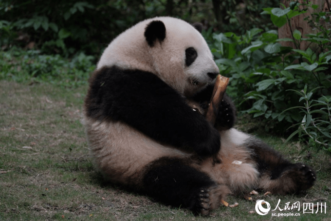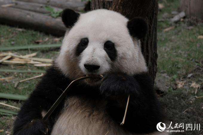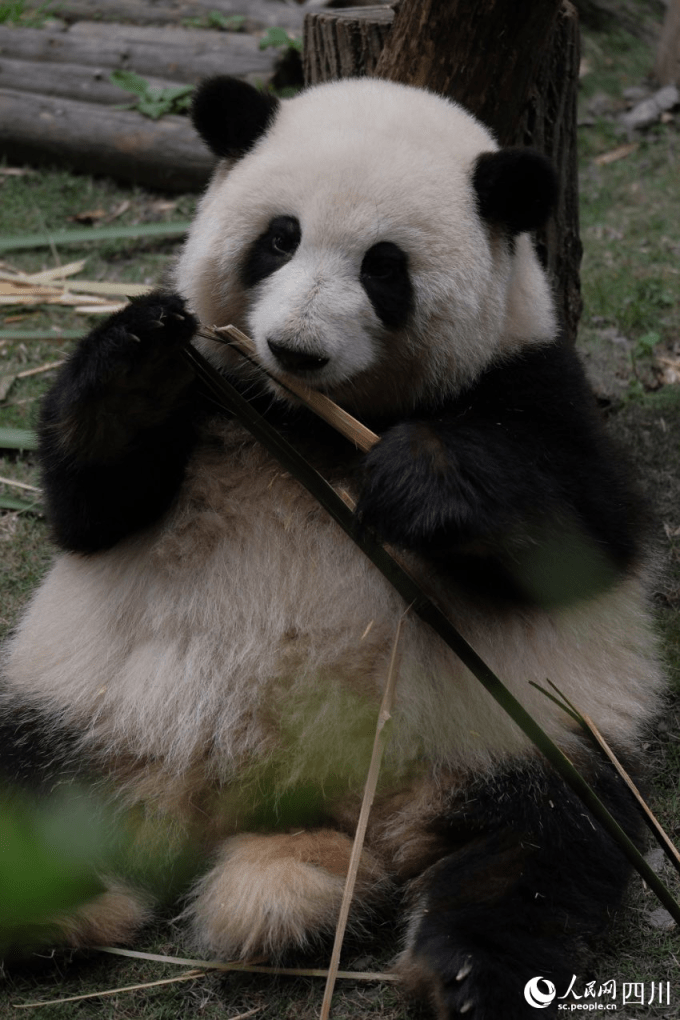 大熊猫“花花”正在吃竹子。成都大熊猫繁育研究基地供图