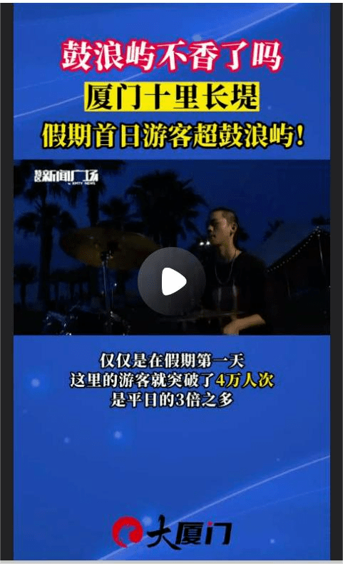 厦门媒体日前的一则报道称,“五一”小长假首日,厦门“十里长堤”景点的游客超过了鼓浪屿。