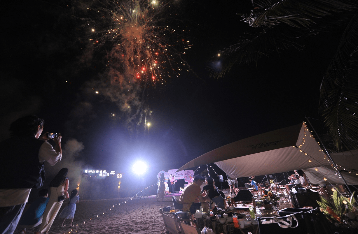 绚丽烟花照亮夜空,共同许下美好心愿。