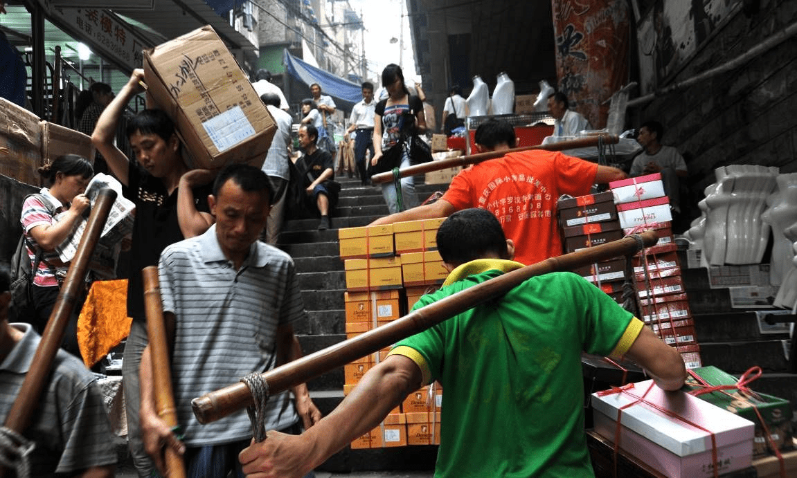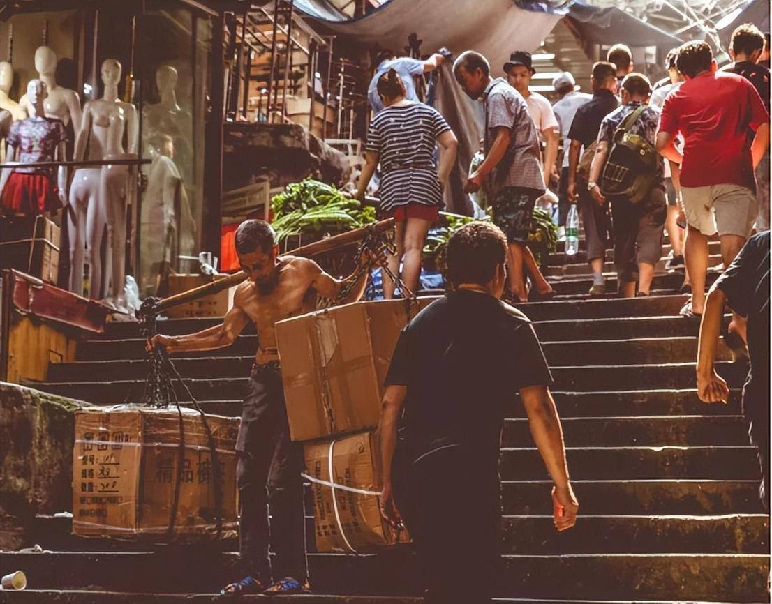 在交通设施有所欠缺的过去,重庆物品周转的主力是三十多万的“棒棒军”。