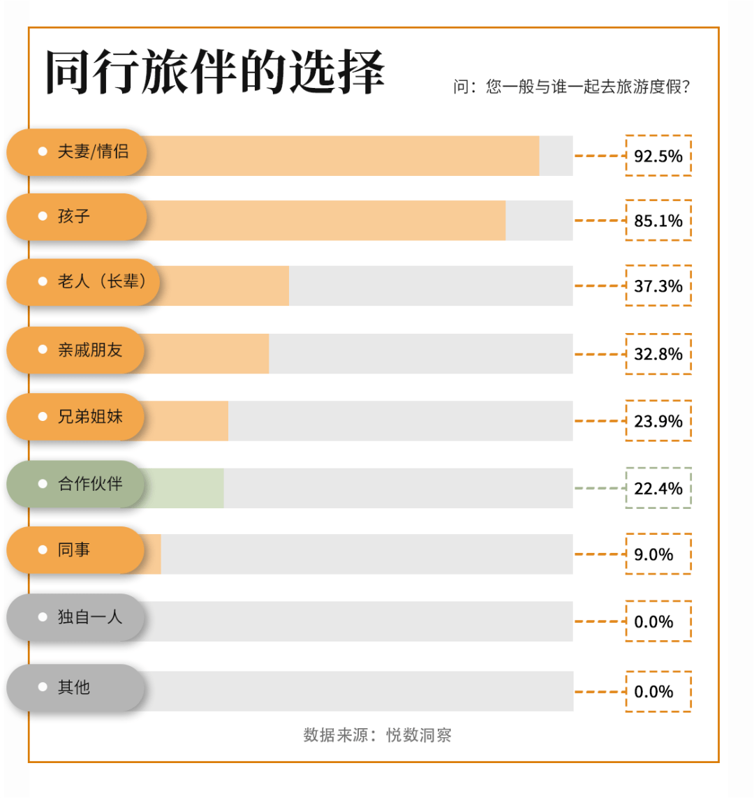 从图表可以看出,大多数的高净值人群会选择3-4人的亲子出游,也有带上老人颐养天年的度假之行。