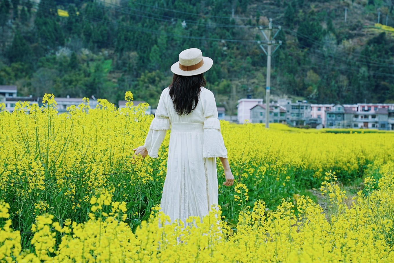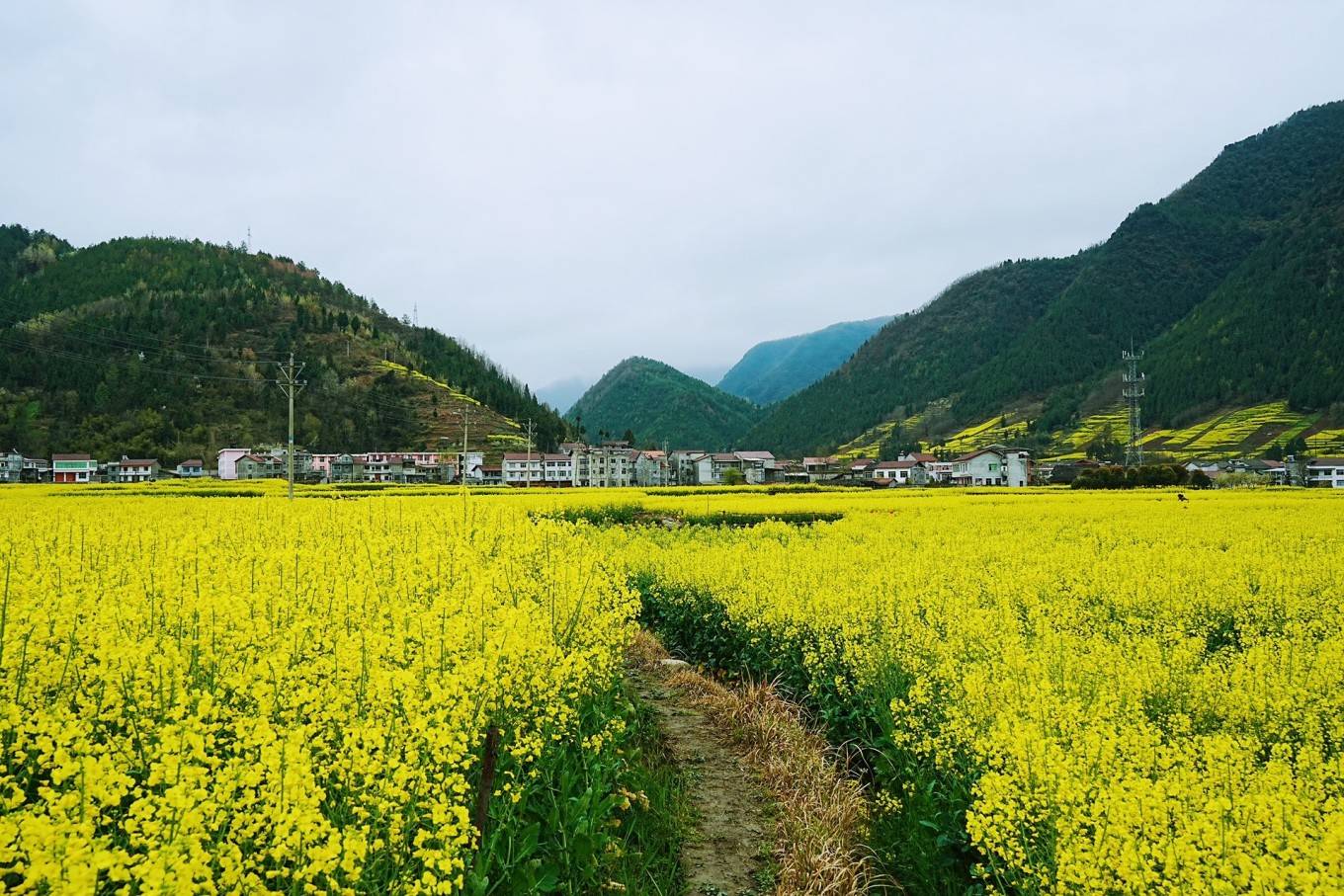 金黄的油菜花合着嫩绿的枝丫在山间的平地随风起伏,似大地写给春天的万字情书。行走在花海中央是别样的体验,空气中无时无刻不弥漫着浓浓的菜花香,夹杂着湿润的空气,让春天在这记忆深刻的味中来来去去。