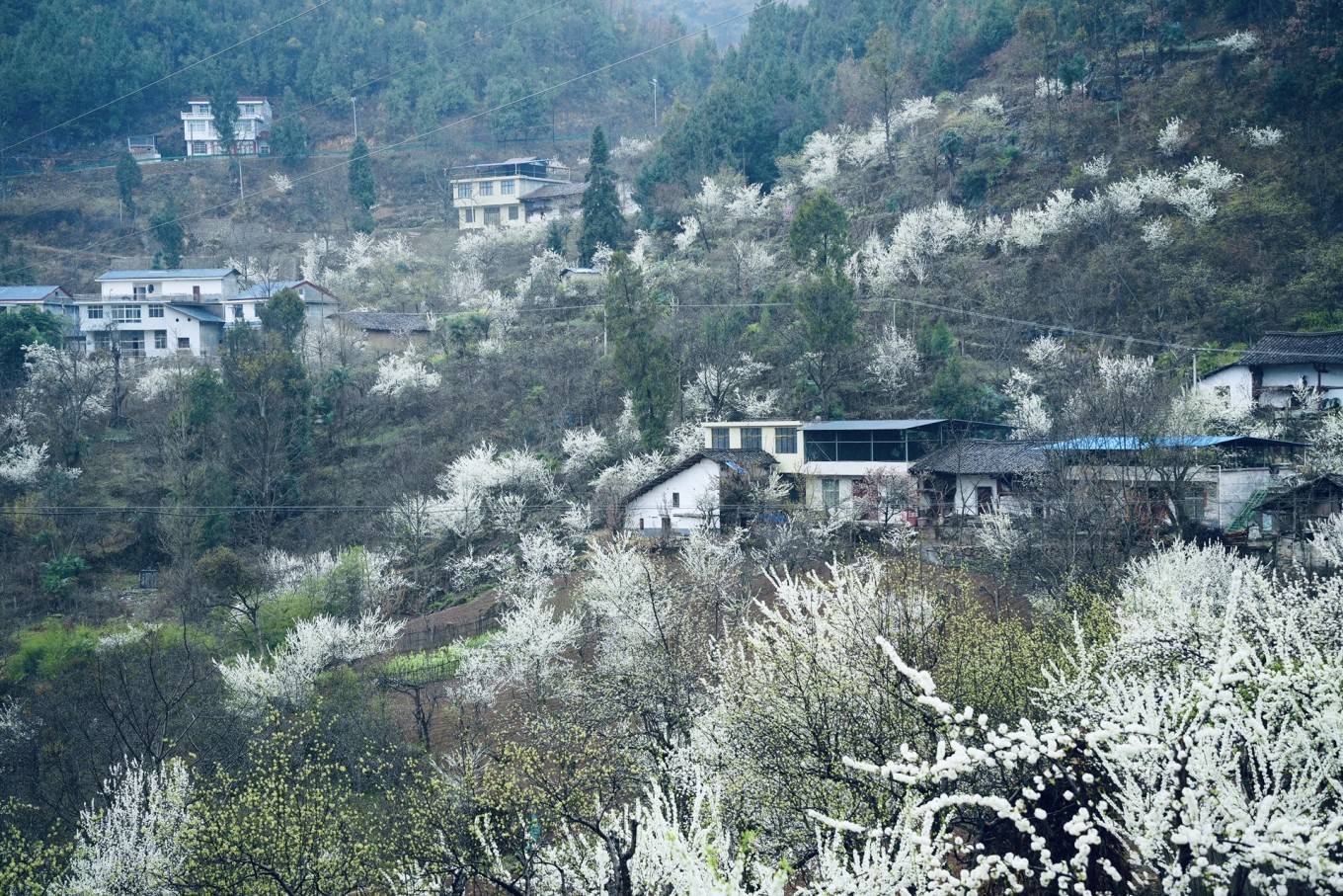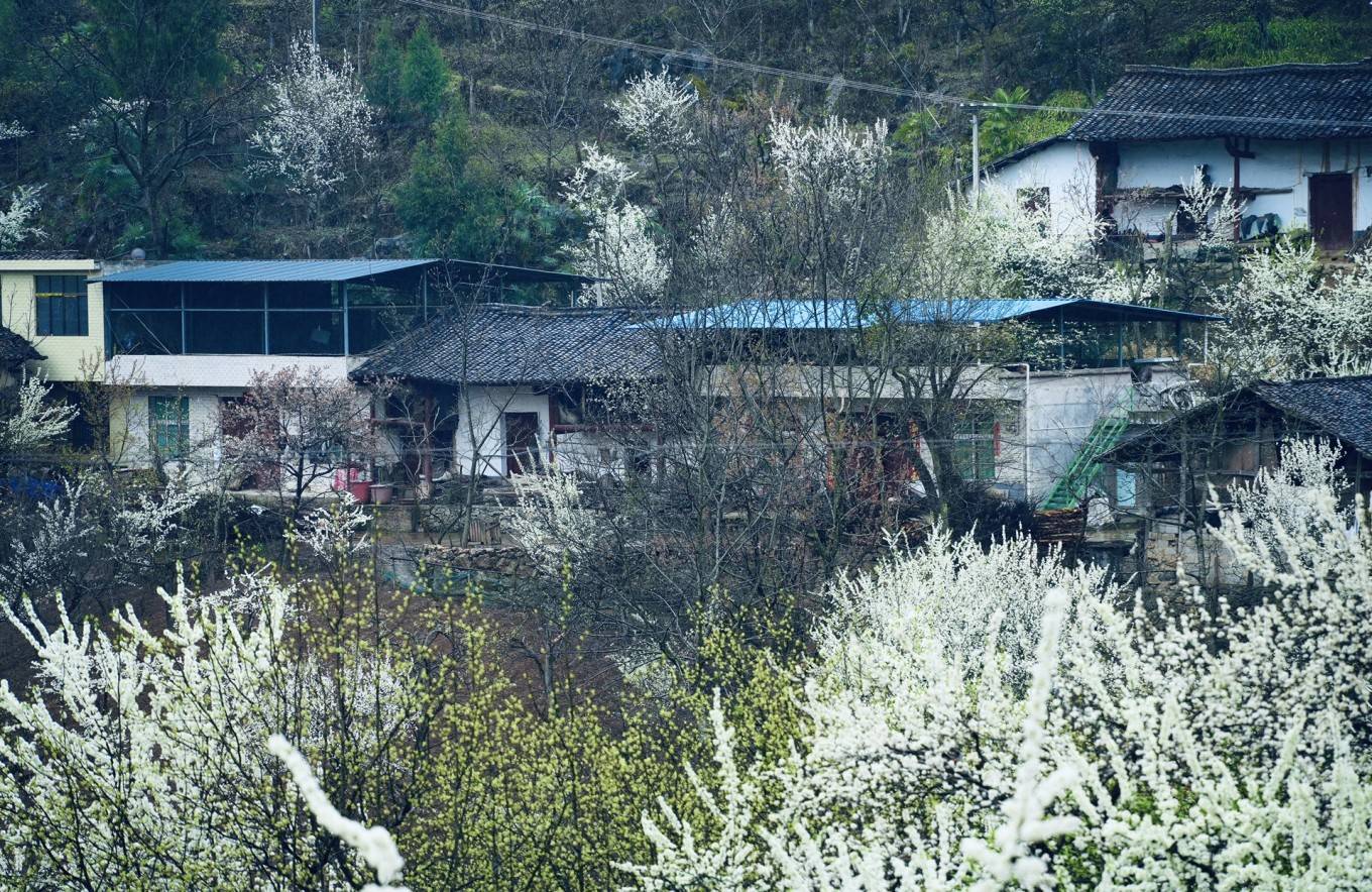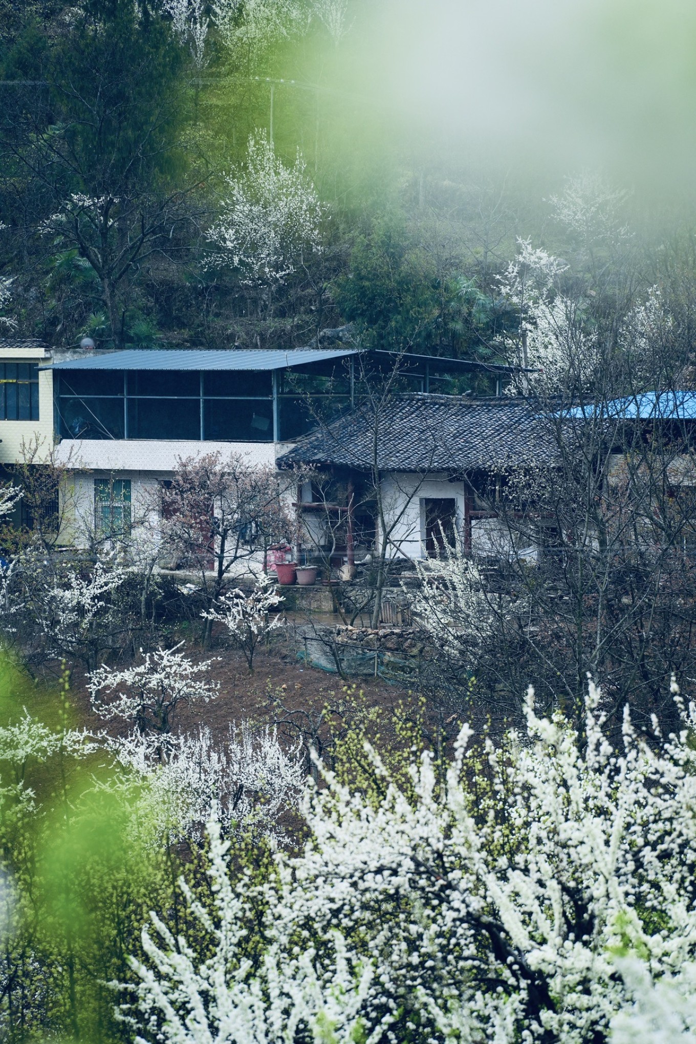 当外地的游客踏进三元镇的白家营村时,四处盛开的李花早已压弯了枝头。 星星点点的雪白宛如黝 黑山 坳上的冰雕,给人踏之欲碎的错觉。