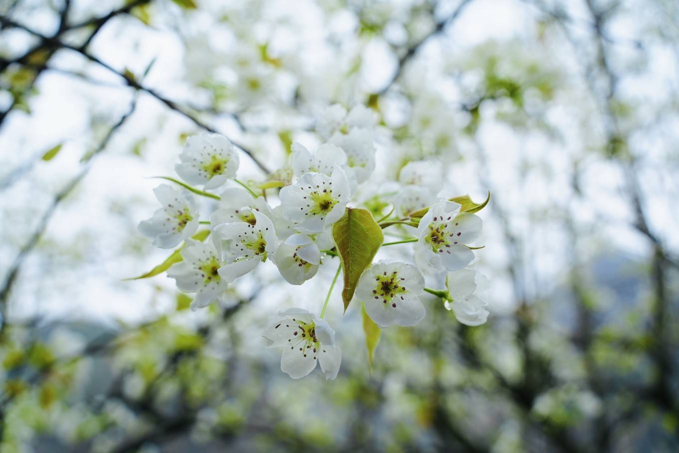 青色的砖瓦是满山梨花树最好的陪伴,我喜欢这种冰冷的浪漫,刚到白营村时从远处看去你一定会误以为这是点缀在房屋上的冰粒,雪白的枝头堆积在一起,簇拥而成了春天最冷艳的色彩。