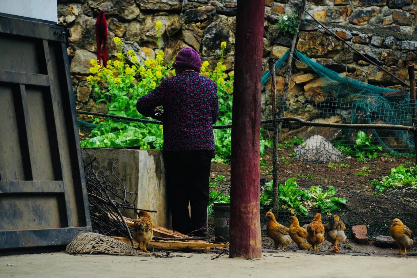 村里劳作的老奶奶让我想起外婆,以前总听外婆说她想去城市生活,来到心心念念的地方之后又开始念叨着早出晚归的农耕生活,这是她离开时最后的烦恼。 在乡野间生活不像在城市中那样拘束,鸡群随意在屋檐下欢腾,飞鸟不再受高楼的阻碍,我们的心自然随之敞开~