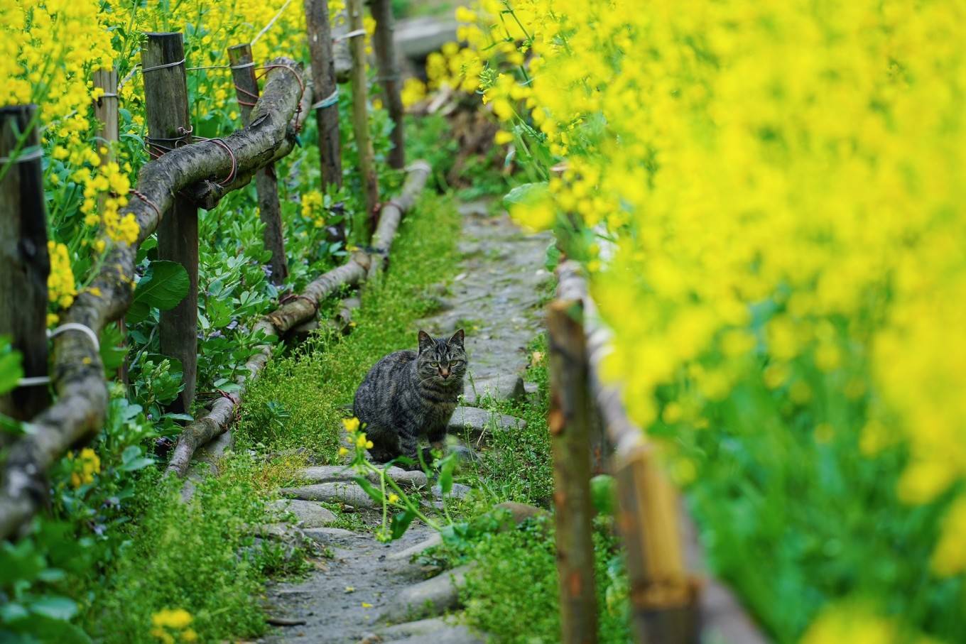 一条小路游走蛇形,穿梭在油菜花海中央,将整个花海一分为二。想要近处观赏油菜花海,乡间的小路算是必经之路。